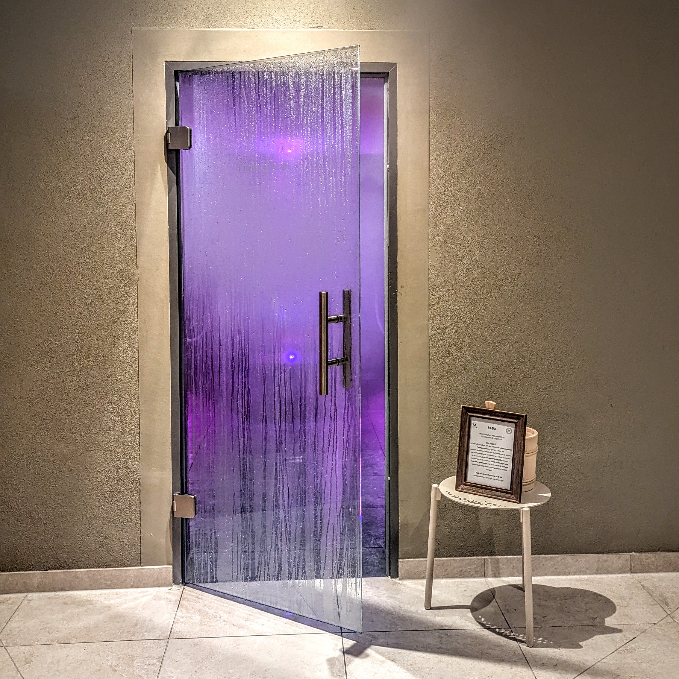 Sanfte Wärme, feiner Dampf und der stille Duft des Waldes – unser Dampfbad ist ein Ort, an dem der Alltag weicht und Ruhe den Raum füllt. Drei Mal pro Woche erwartet Sie hier ein besonderes Ritual: ein natürliches Kräuterpeeling, liebevoll hausgemacht aus Pflanzen aus unserem Paradiesgart’l. Es reinigt sanft und schenkt der Haut neue Frische – wie ein leiser Neustart. Bei etwa 45 °C und nahezu 100 % Luftfeuchtigkeit entsteht ein Klima, das entspannt, entlastet und tief durchatmen lässt.